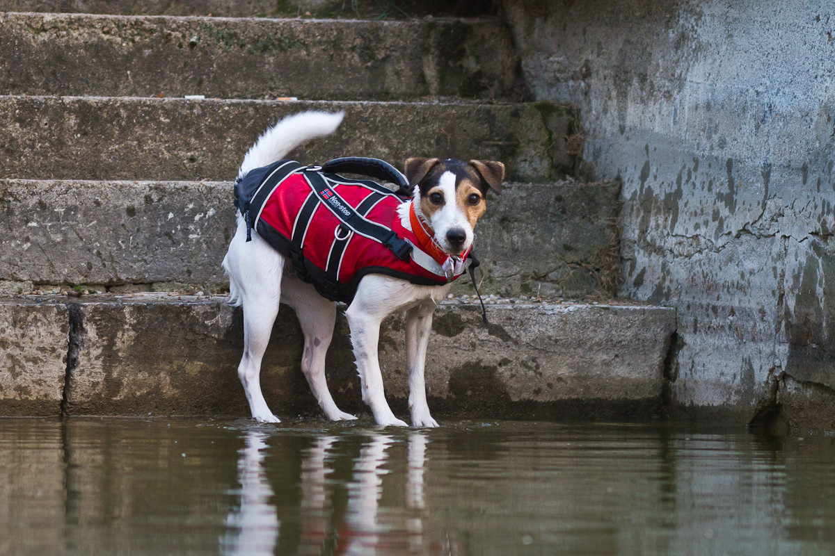 Plovací vesta nemá být až ke kořeni ocasu, stačí, když končí tak 5-10 cm za hrudní páteří. Plovací vesta psa nadnáší, ale současně ho nesmí omezovat v pohybu při plavání.
